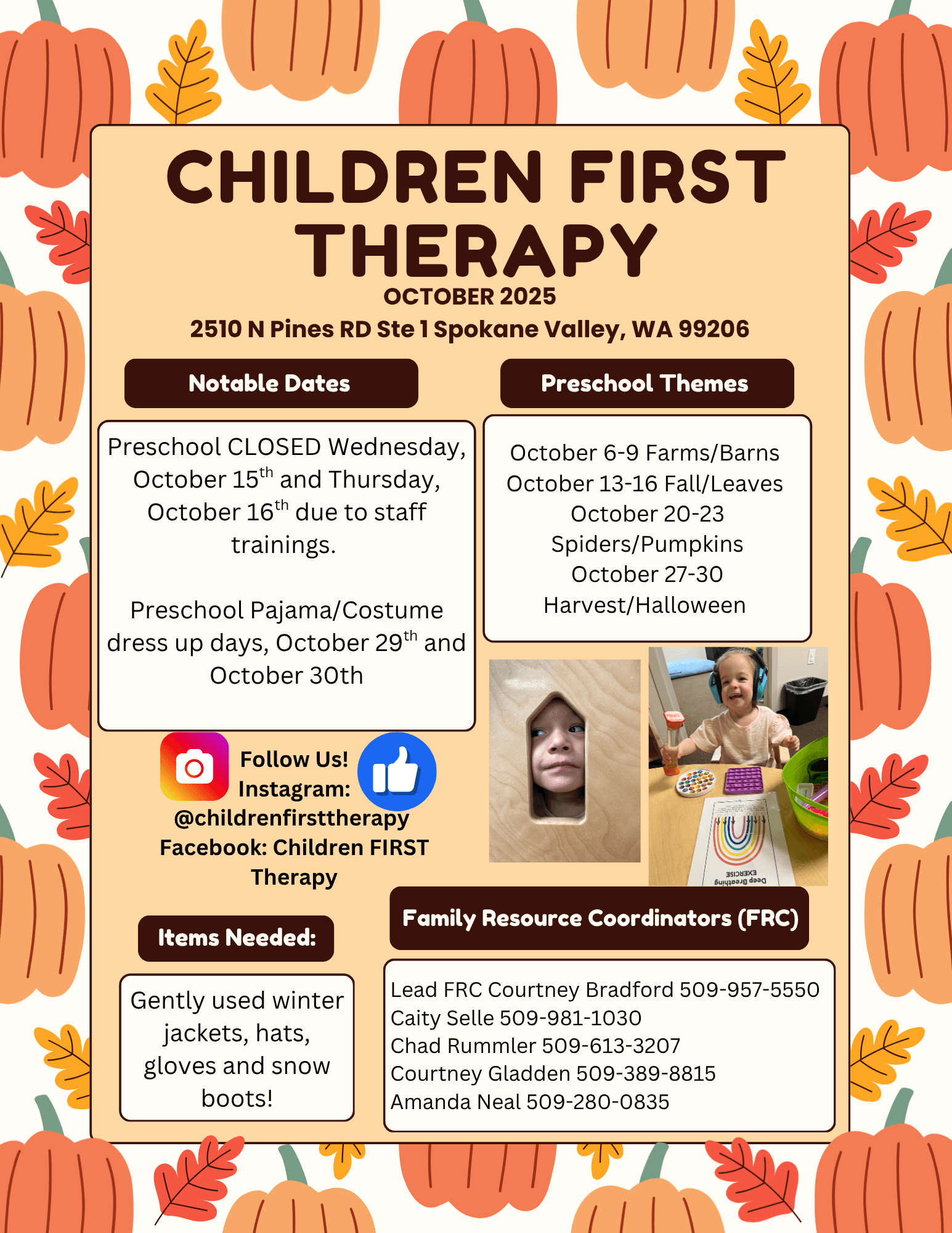 Children FIRST Therapy provides the highest quality early intervention services for children birth to three with developmental delays and disabilities through our home and community-based therapy program. Our family-centered approach ensures that we also serve the child’s caregivers by providing resource coordination and hands-on training for the continuation of therapy and progress at home. Learn more and get involved.