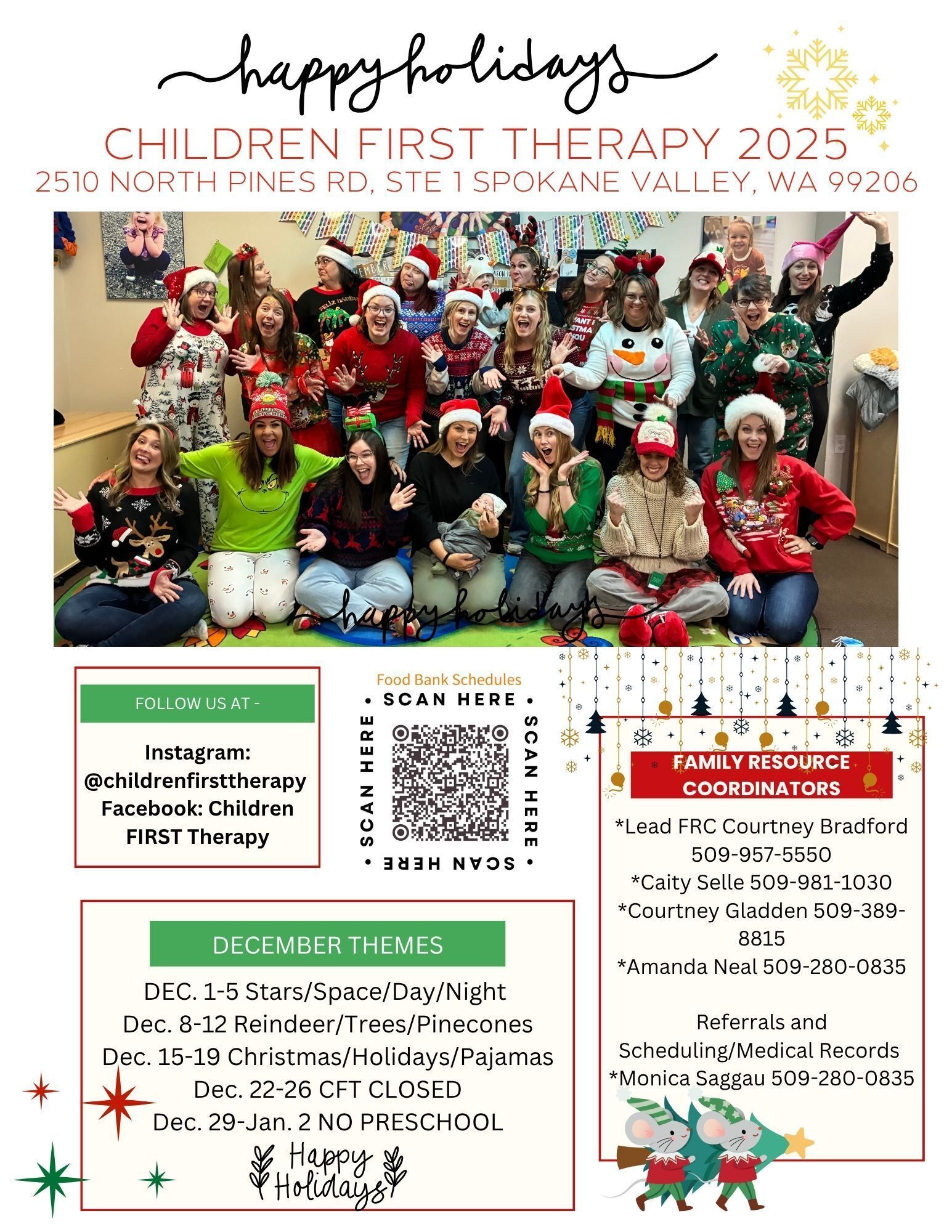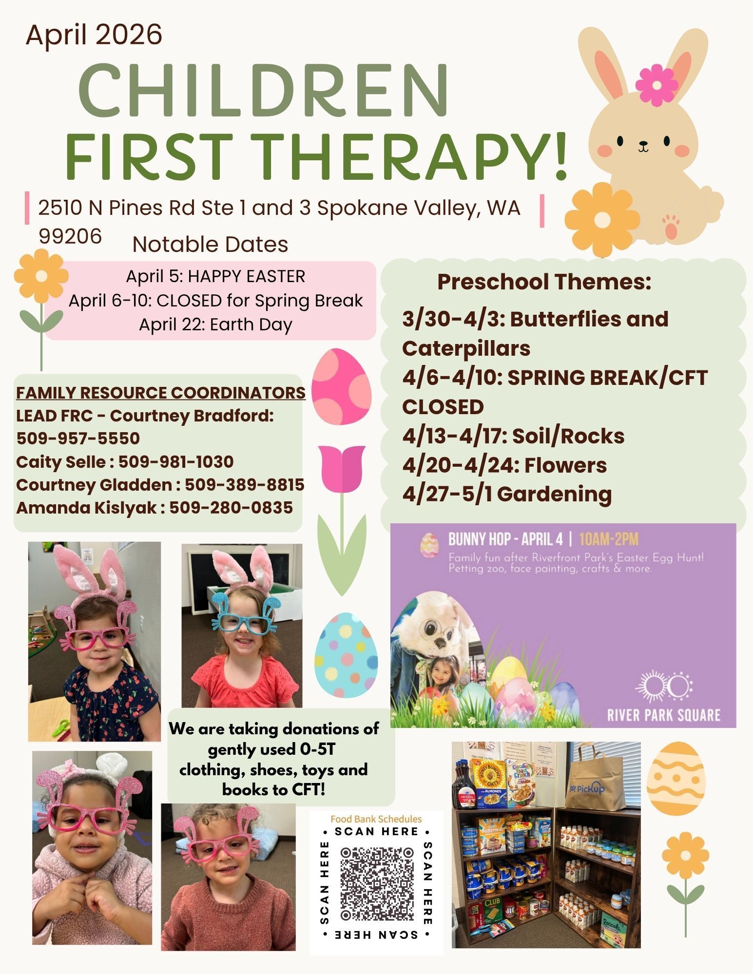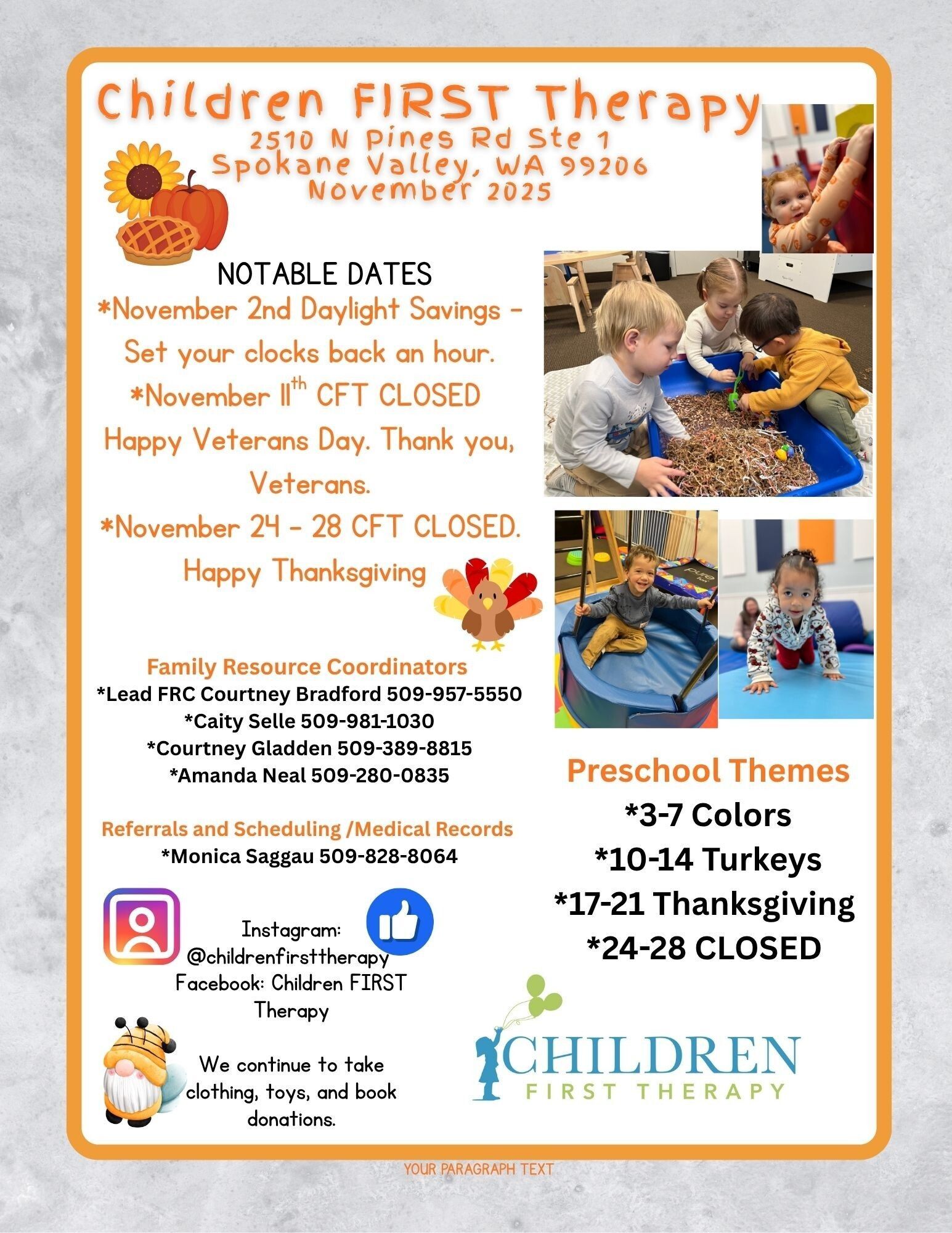 Children FIRST Therapy provides the highest quality early intervention services for children birth to three with developmental delays and disabilities through our home and community-based therapy program. Our family-centered approach ensures that we also serve the child’s caregivers by providing resource coordination and hands-on training for the continuation of therapy and progress at home. Learn more and get involved.